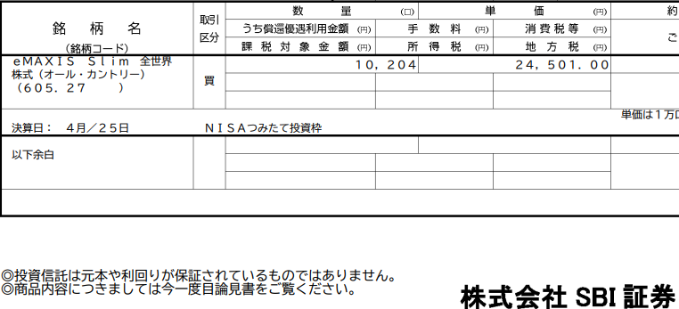 今回は積立(オール・カントリー)の購入レシート(領収書)でした。