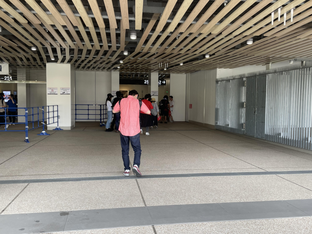 特に手荷物検査などは無く、発券したチケットのバーコードをかざして入場します。入場口のスタッフが、一度チケットを確認してから(何を確認していたのかな)、バーコードを読み込むような流れで進んでいきました。行列は全くなく、待ちなく入場できました。