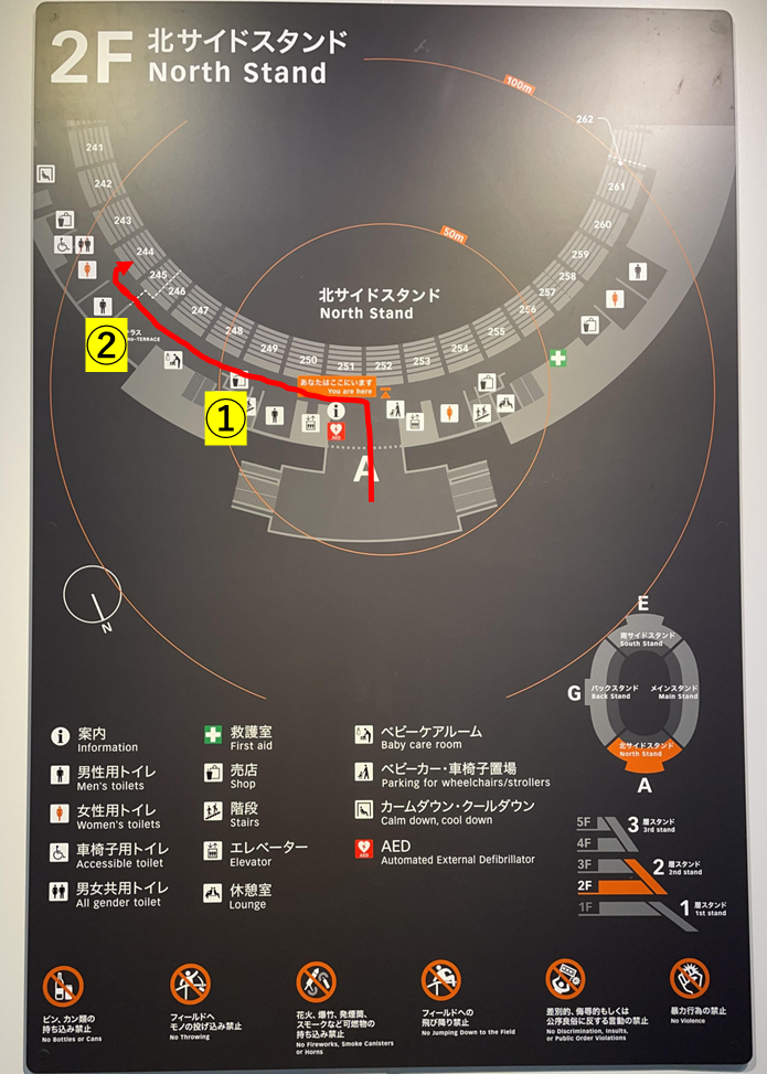 しかちゃんの席はA1ブロックだったため、以下の経路で移動しました。