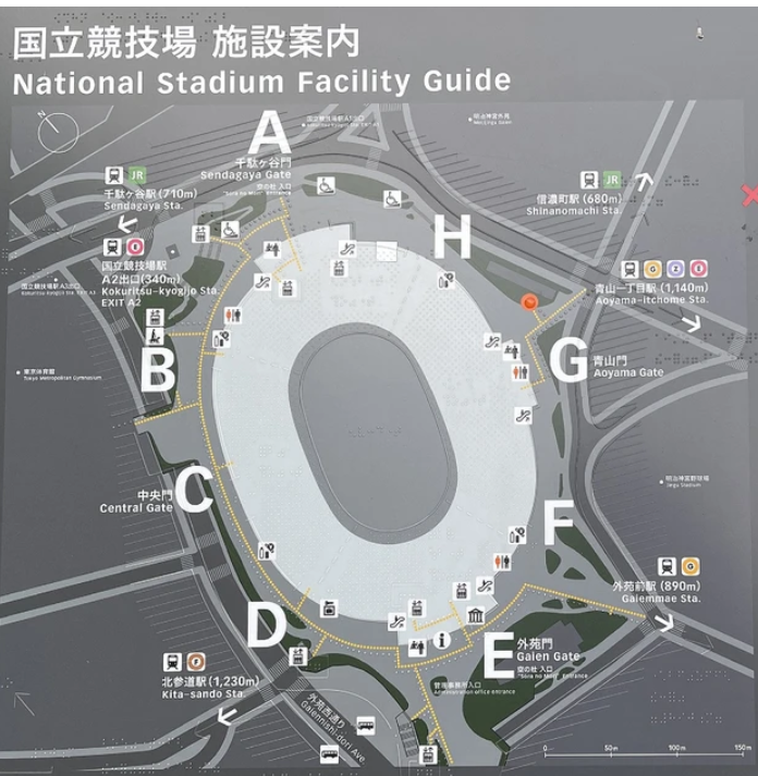 よくよく確認すると、国立競技場には4つの入口があるようで、座席の場所によっては結構歩く必要があります。事前に座席の場所を調べておくといいかもしれません。だた、周回できますので、イベントの雰囲気を味わいたい方は、特に気にしなくても良い気がします。