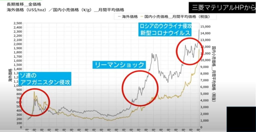 また、金には、宝飾品、金地金、コイン、半導体向けなどハイテク分野での需要があります。